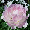 Description: Japanese morning glory (I. nil), mauve-cocoa w/white rim, variegated leaf